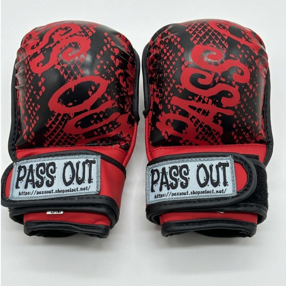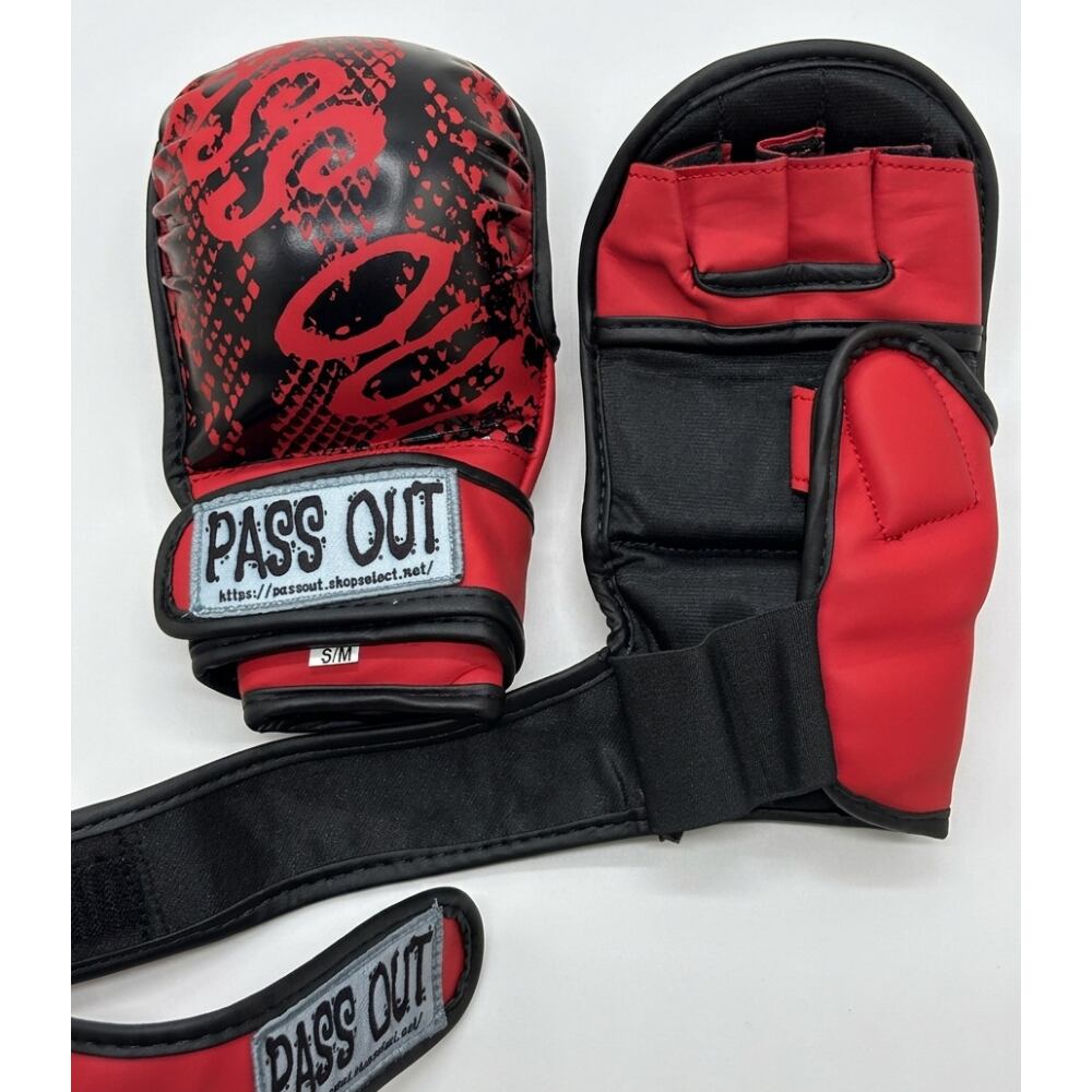 PASS OUT パウンドグローブ [パイソンデザイン] オープンフィンガー MMA 総合格闘技 グラップリング 練習用グローブ(レッド)
